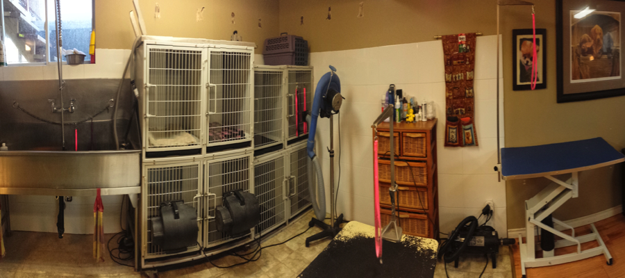 Our salon is an open environment. When you walk in all is visible, no back rooms, and all equipment and crates are in full view. We work one-on-one with your Pet. Pets can be free to roam our facility and lie on our comfy beds or crates are available along with comfy blankets for their stay.